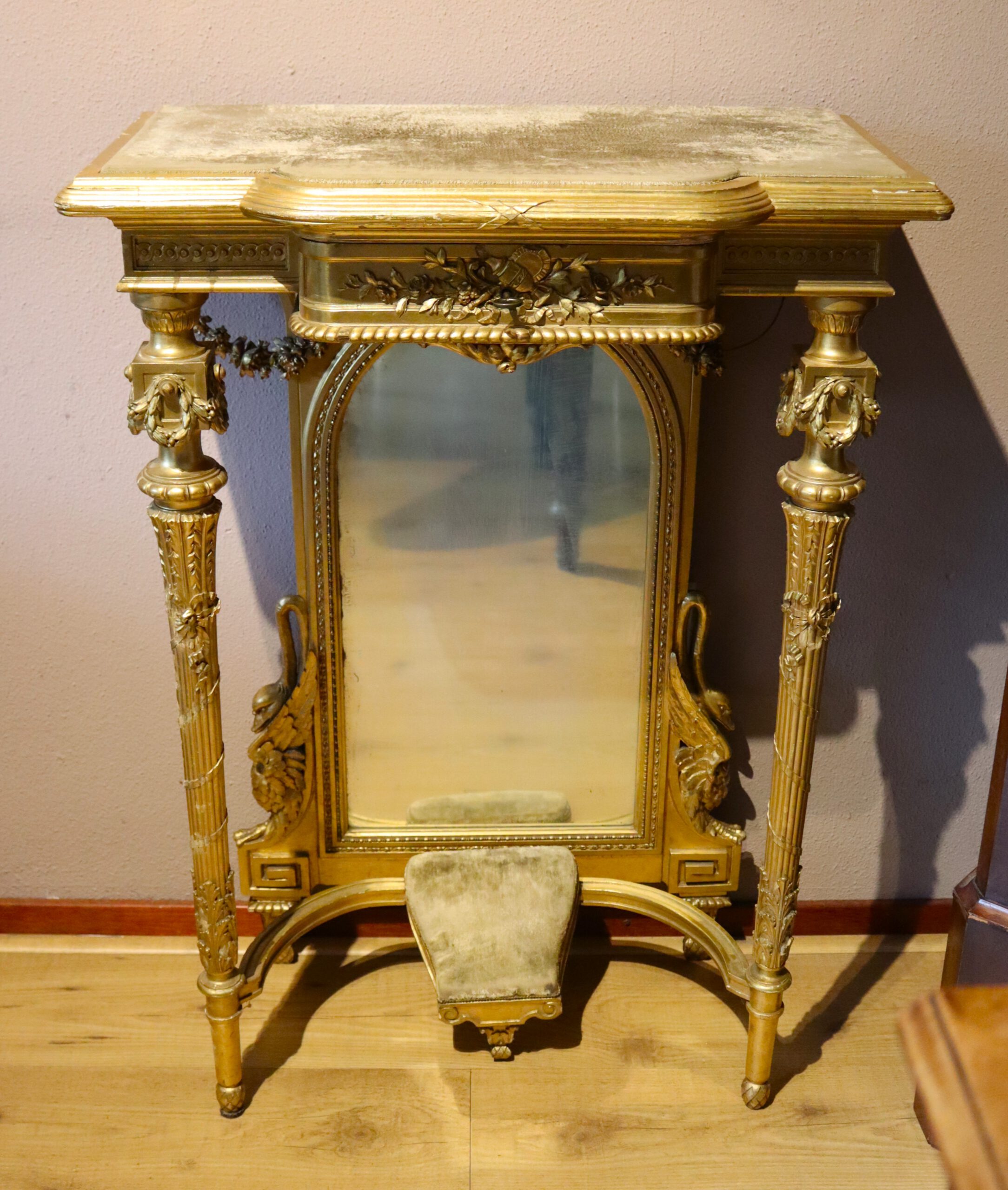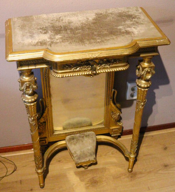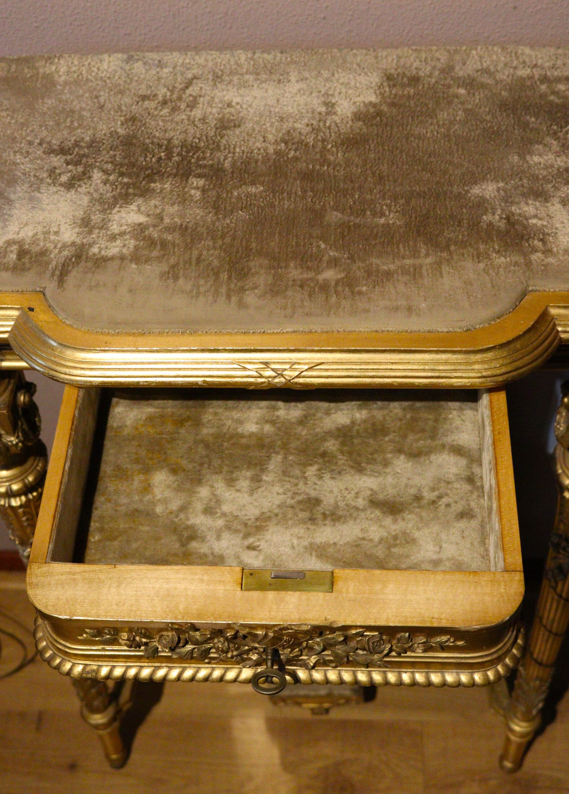Zeer fraai antiek van verguld hout gemaakt antiek console- of toilettafeltje.