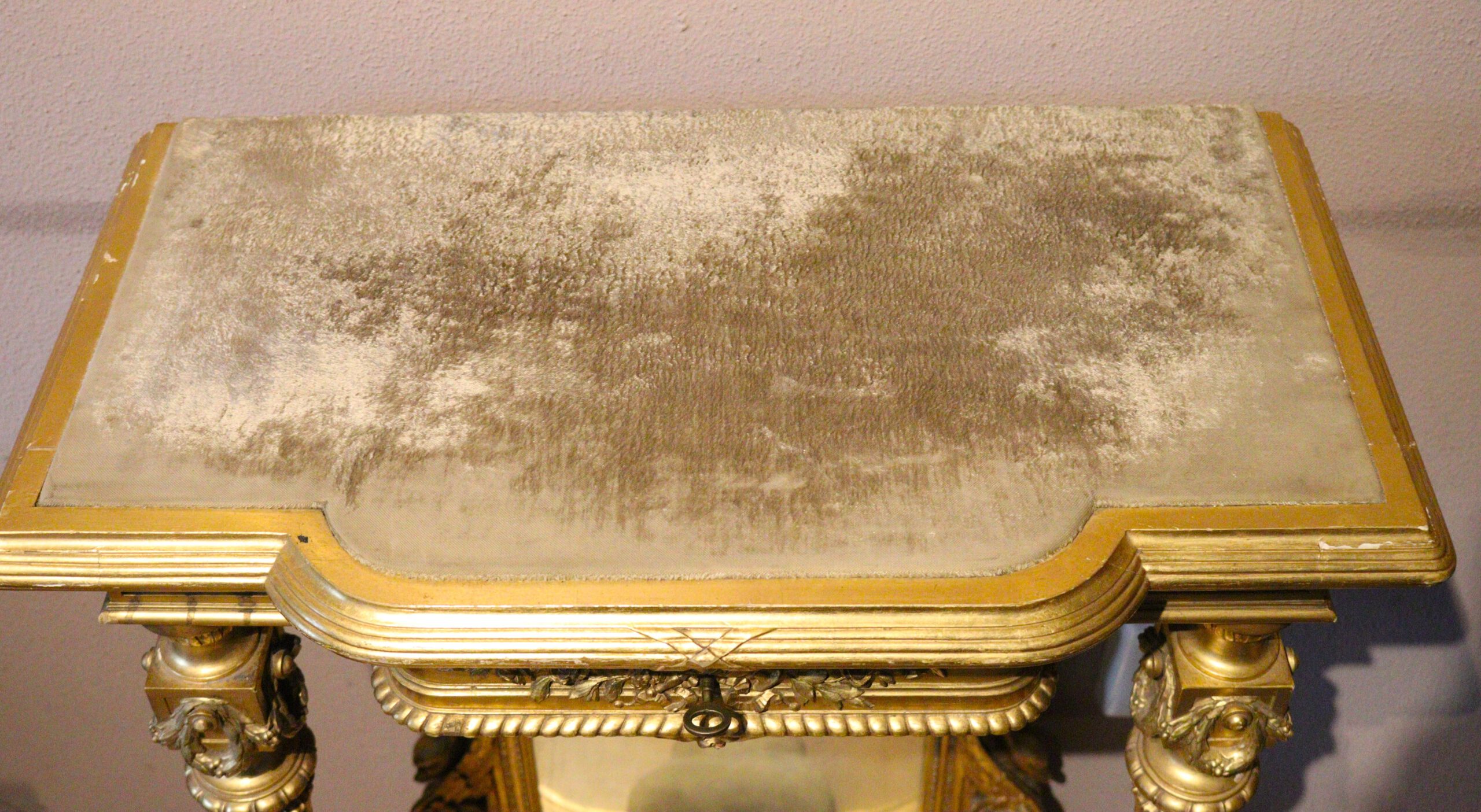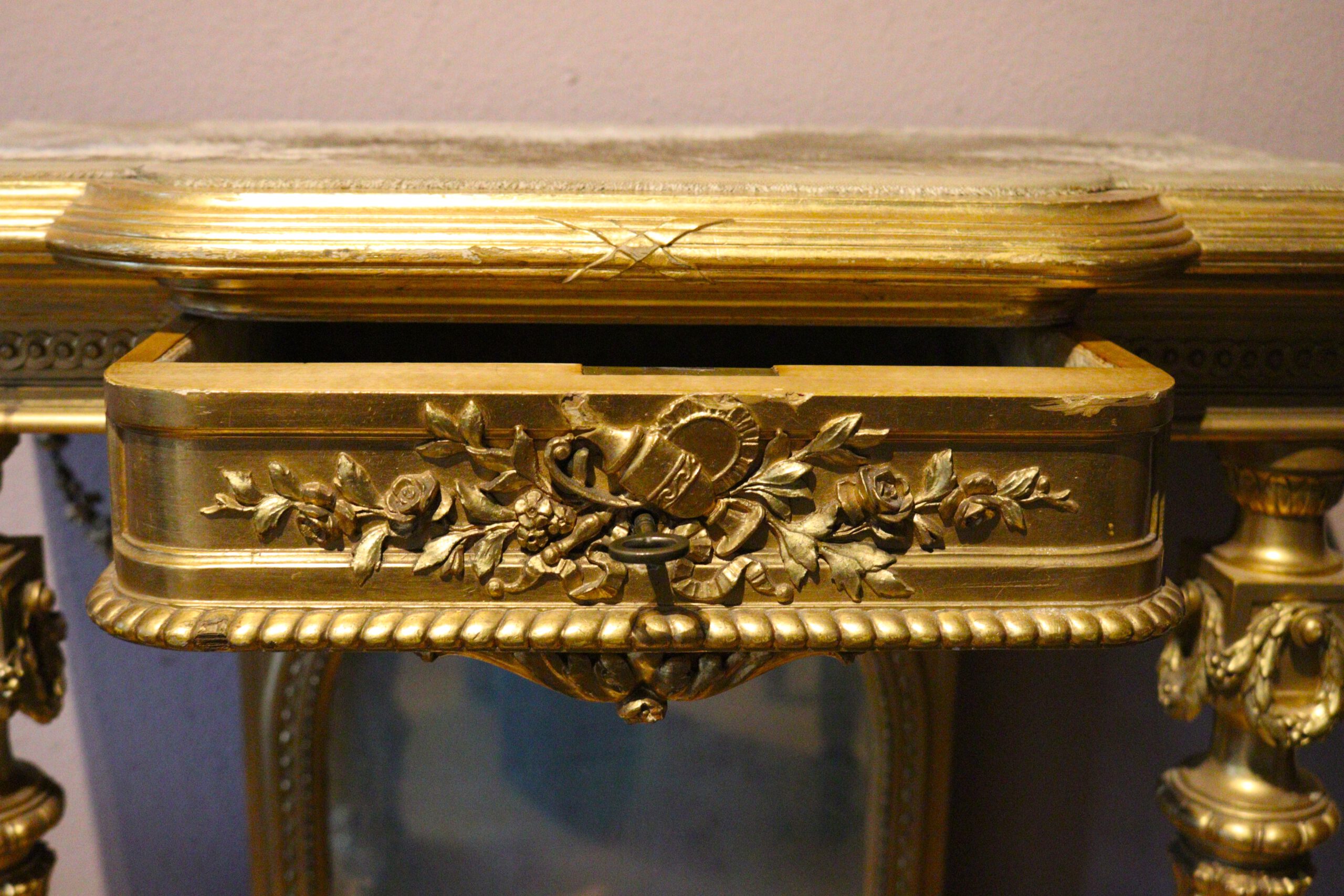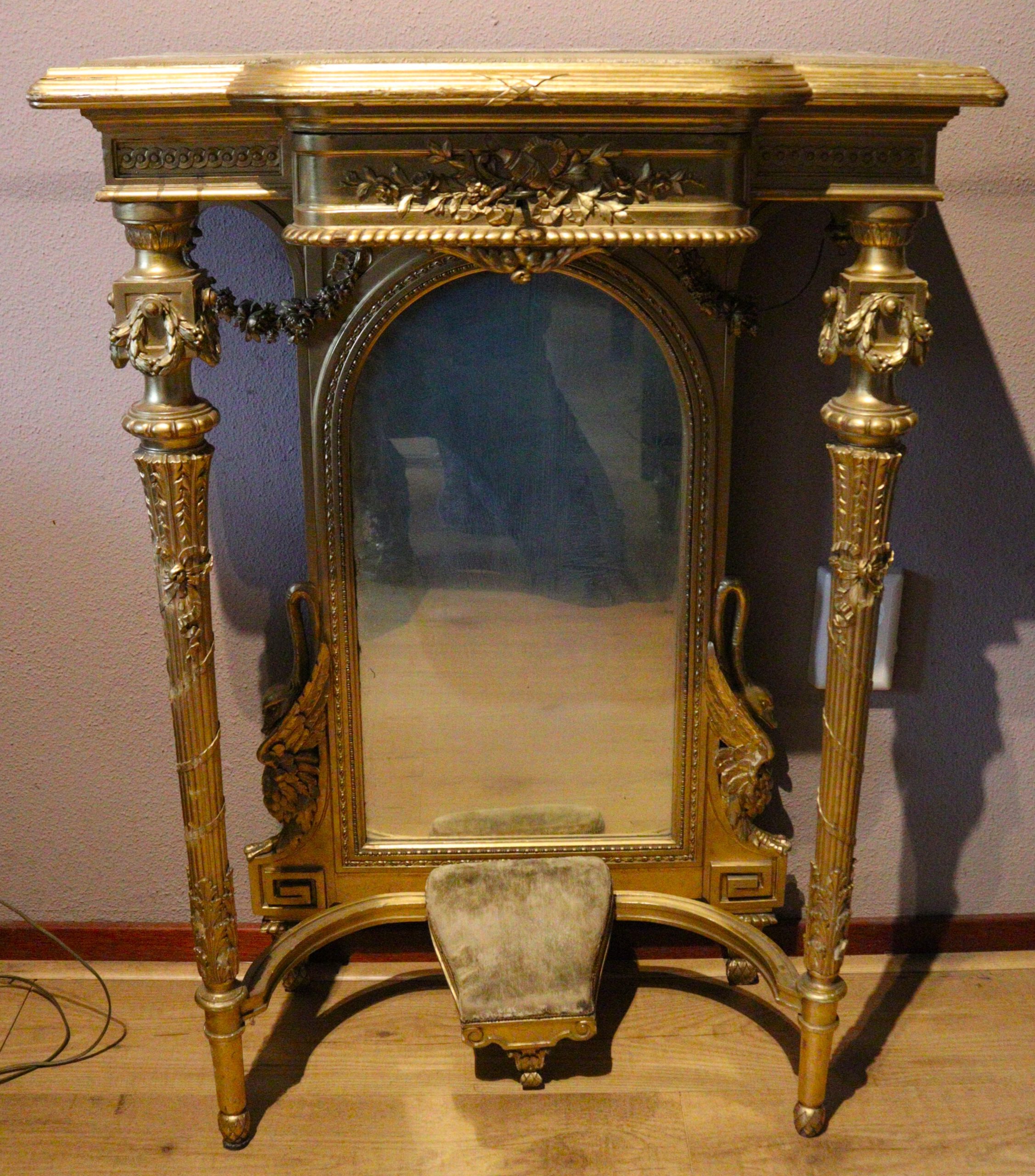 Zeer fraai antiek van verguld hout gemaakt antiek console- of toilettafeltje.
