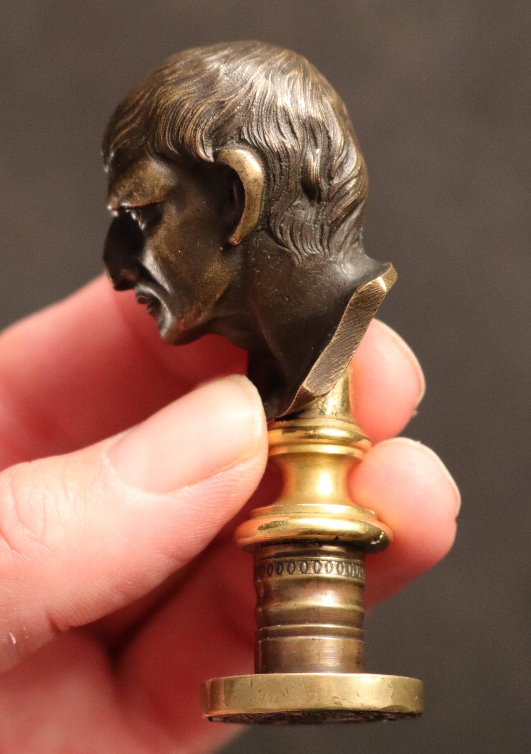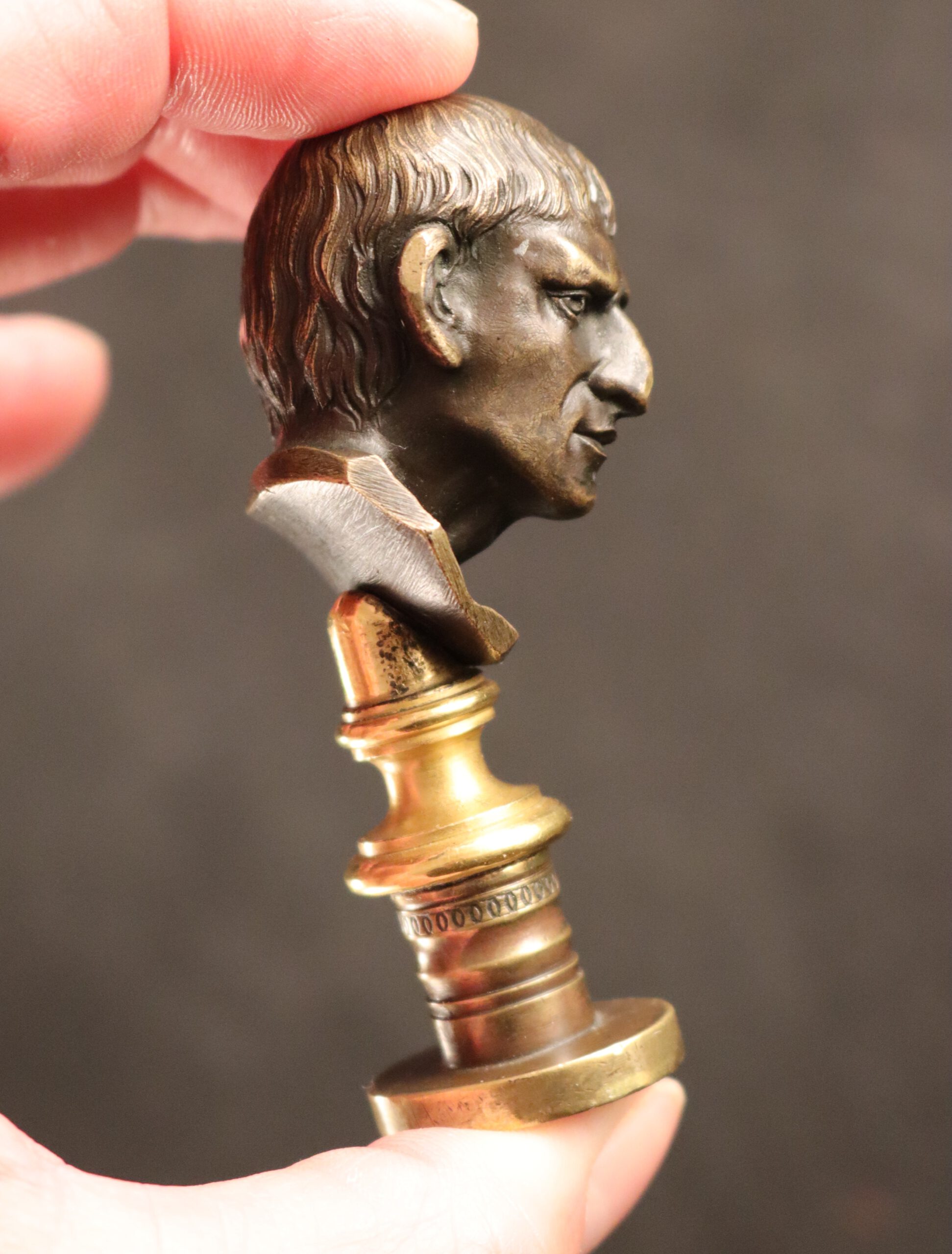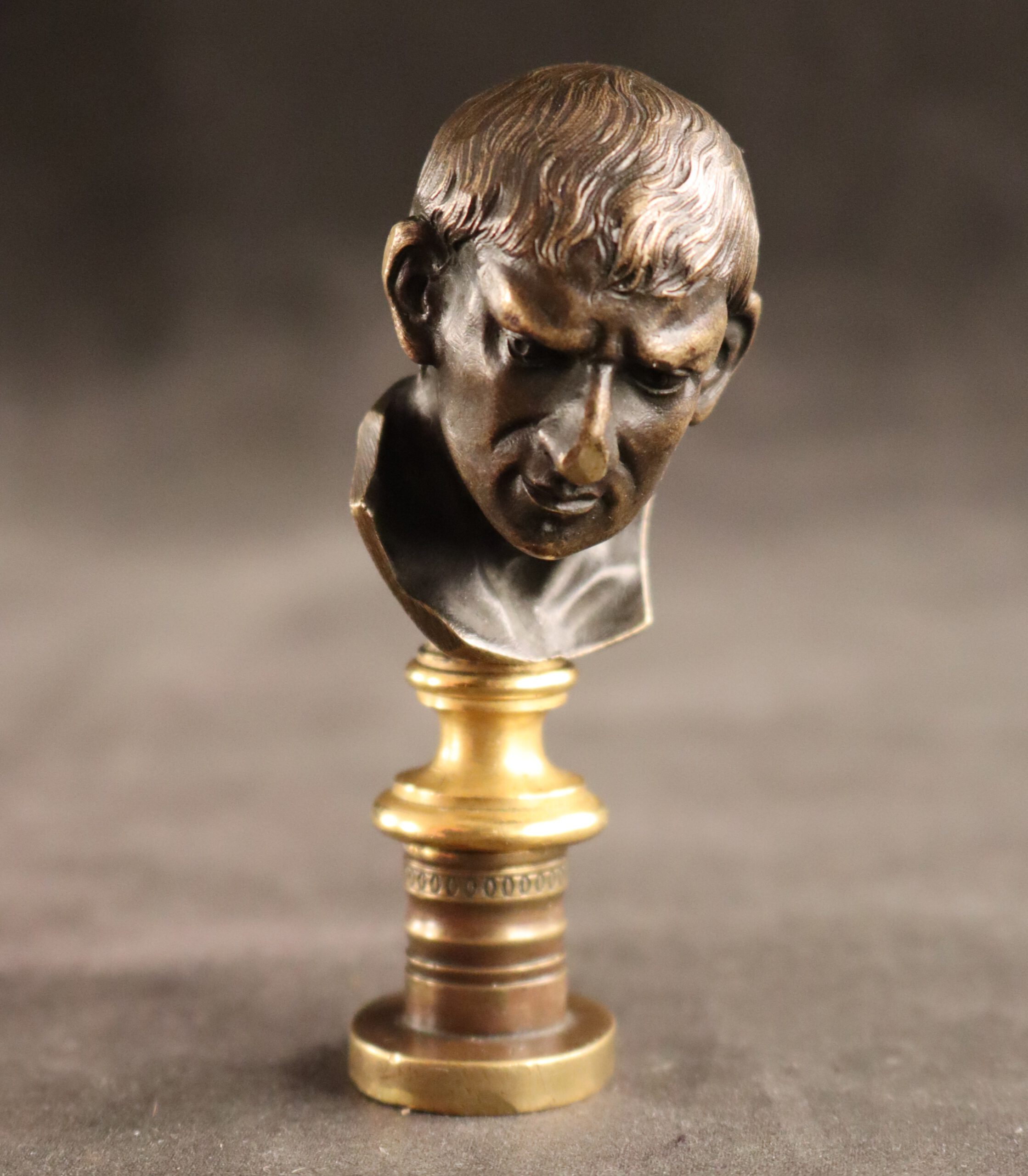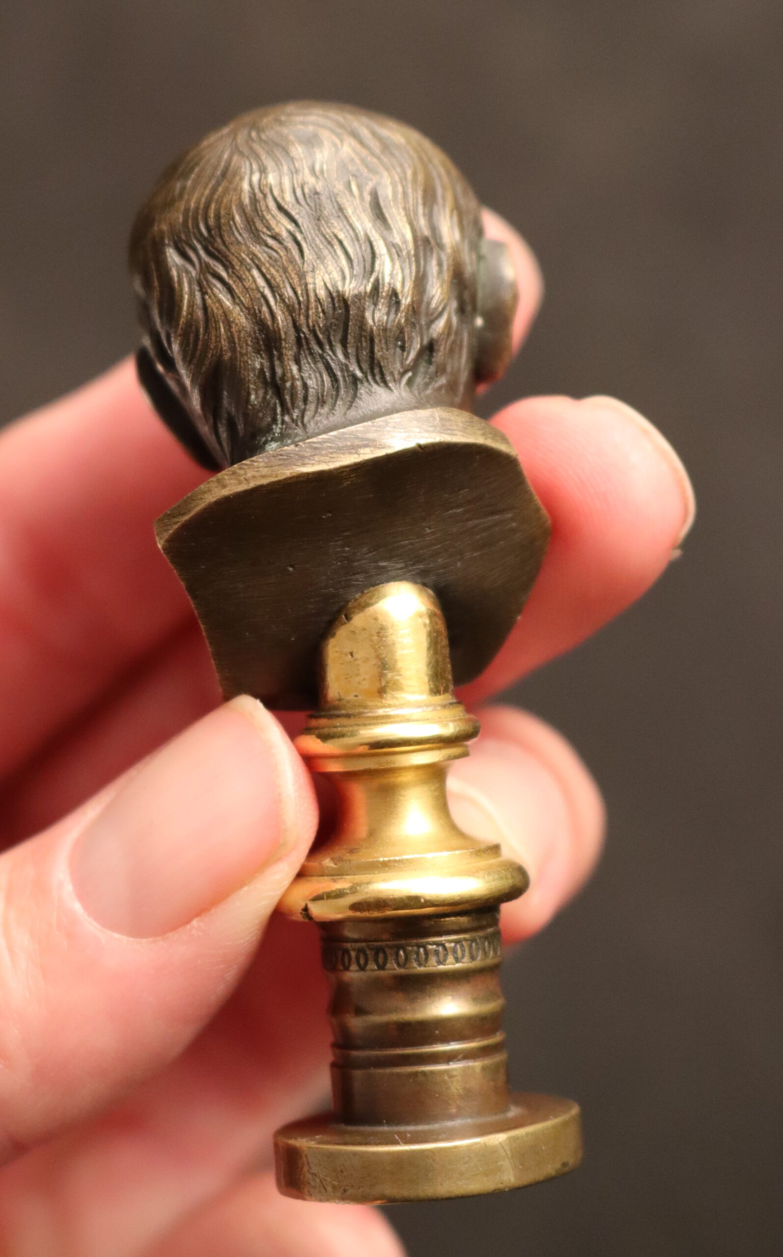 Zeer fraaie antieke massief bronzen lakzegel in de vorm van de Romeinse keizer Titus.