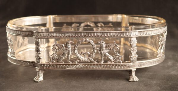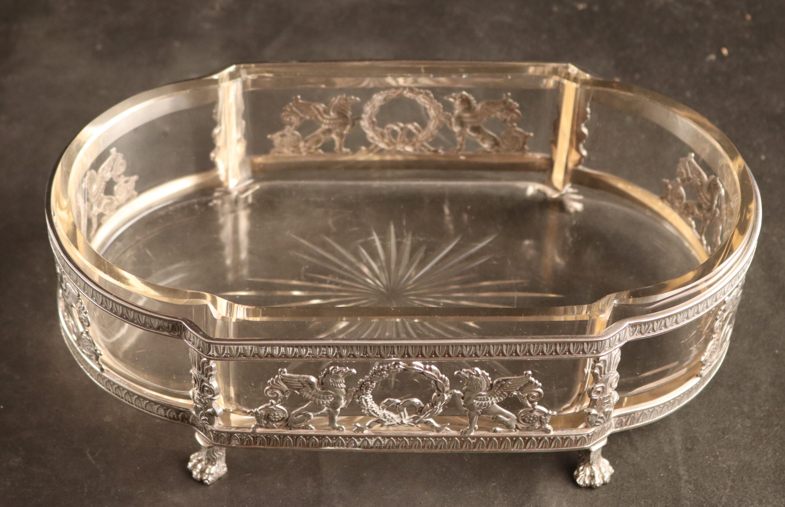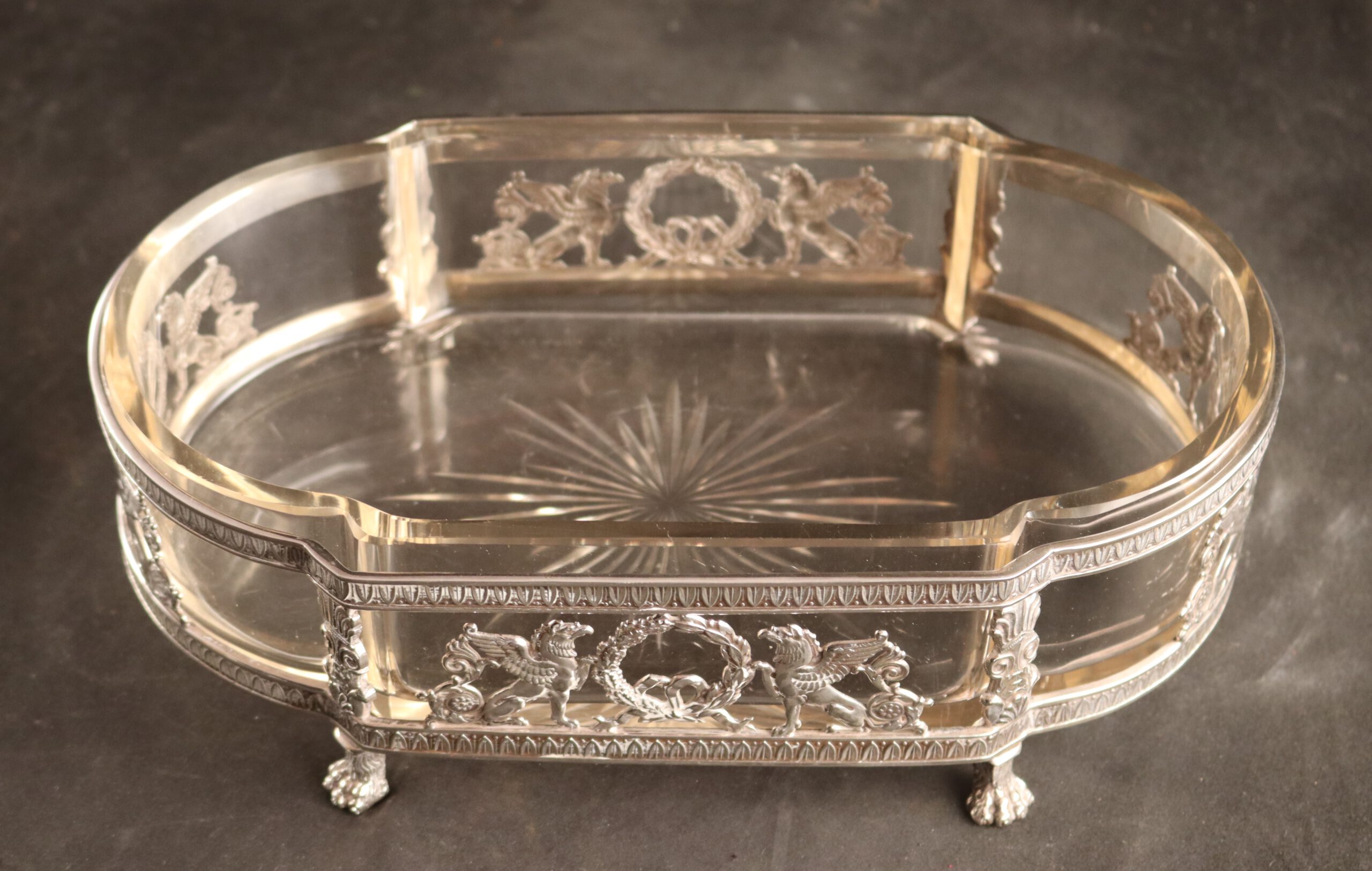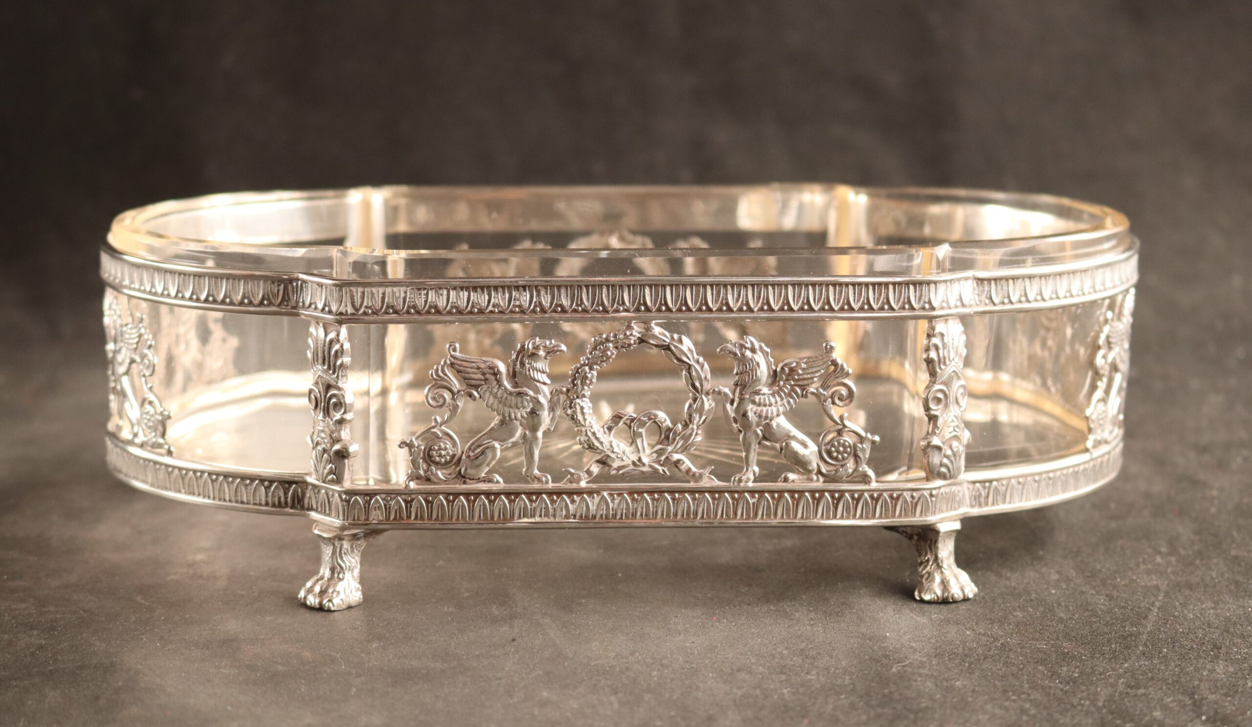 Zeer fraaie antieke kristallen jardinière die gevat zit in een verzilverd bronzen Empire montuur.