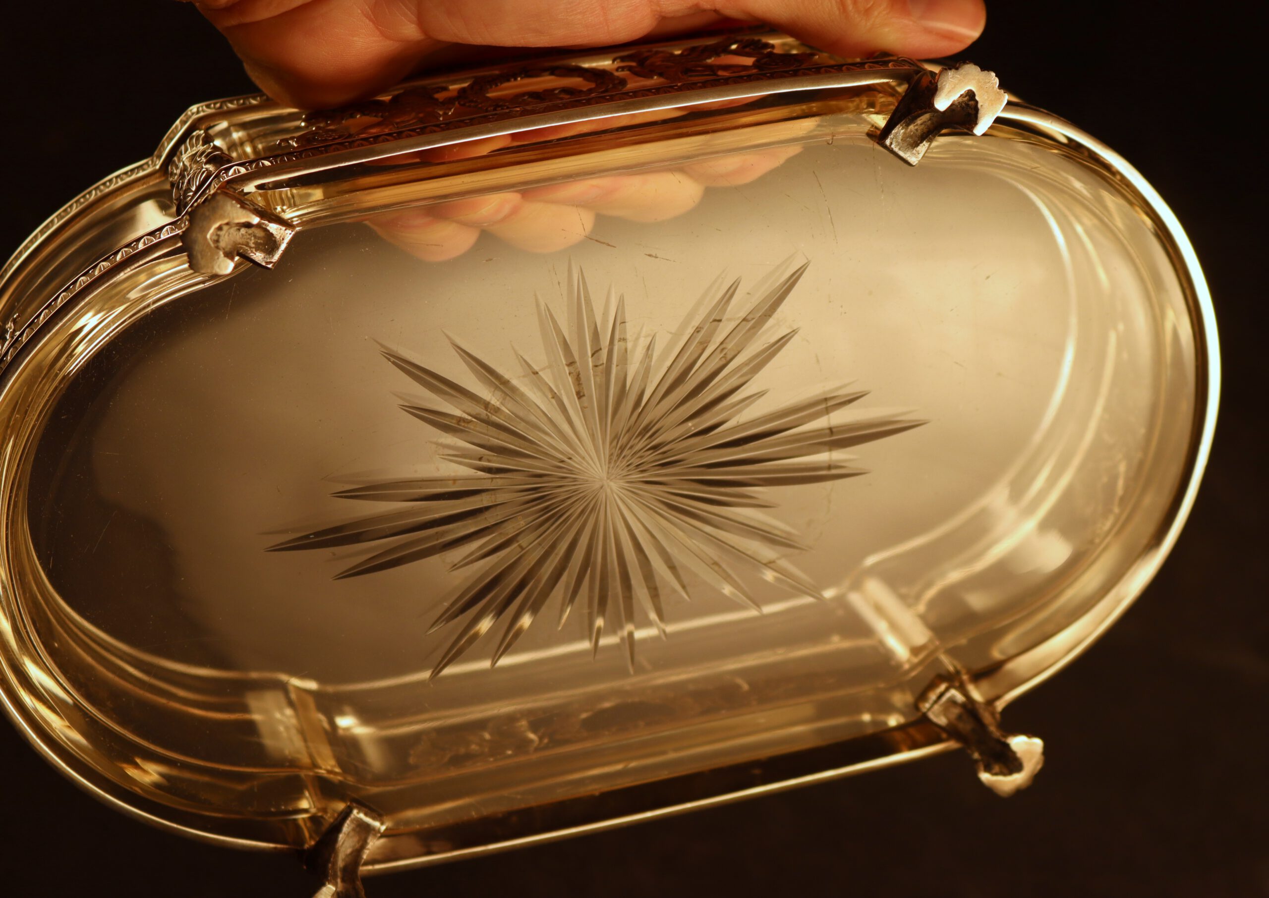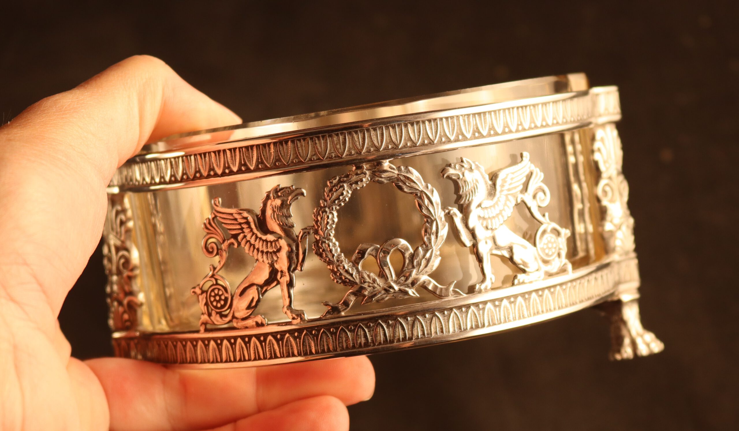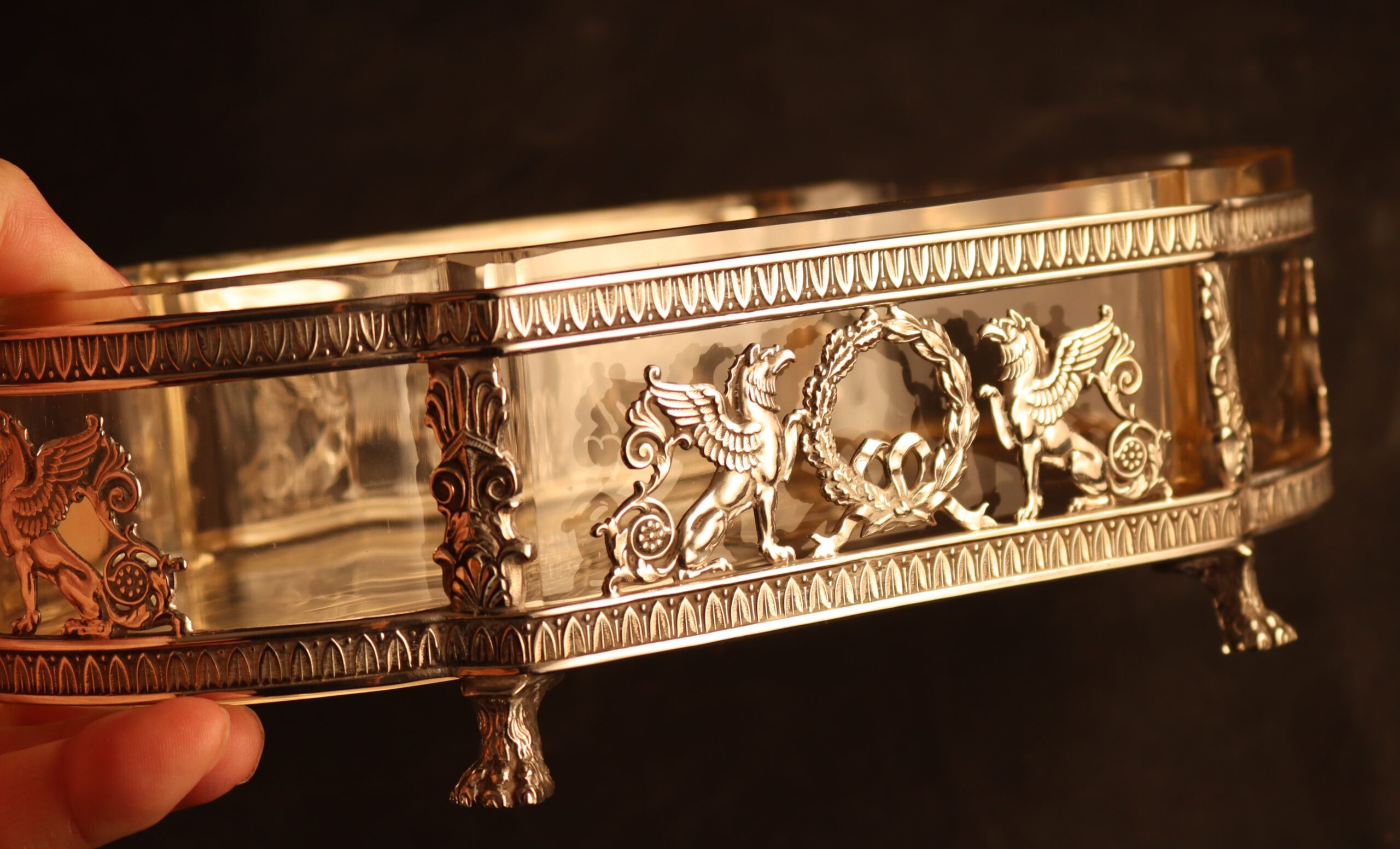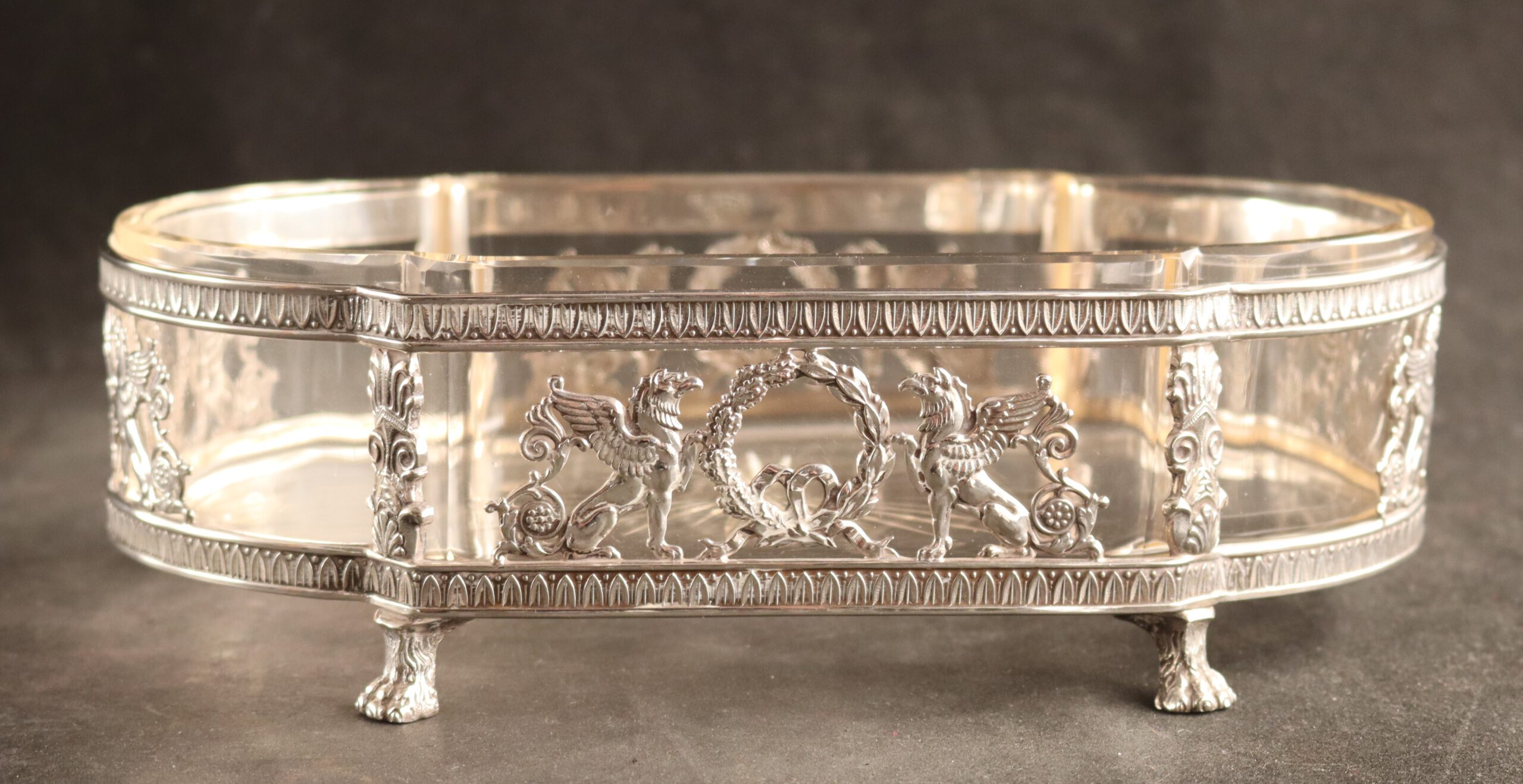 Zeer fraaie antieke kristallen jardinière die gevat zit in een verzilverd bronzen Empire montuur.