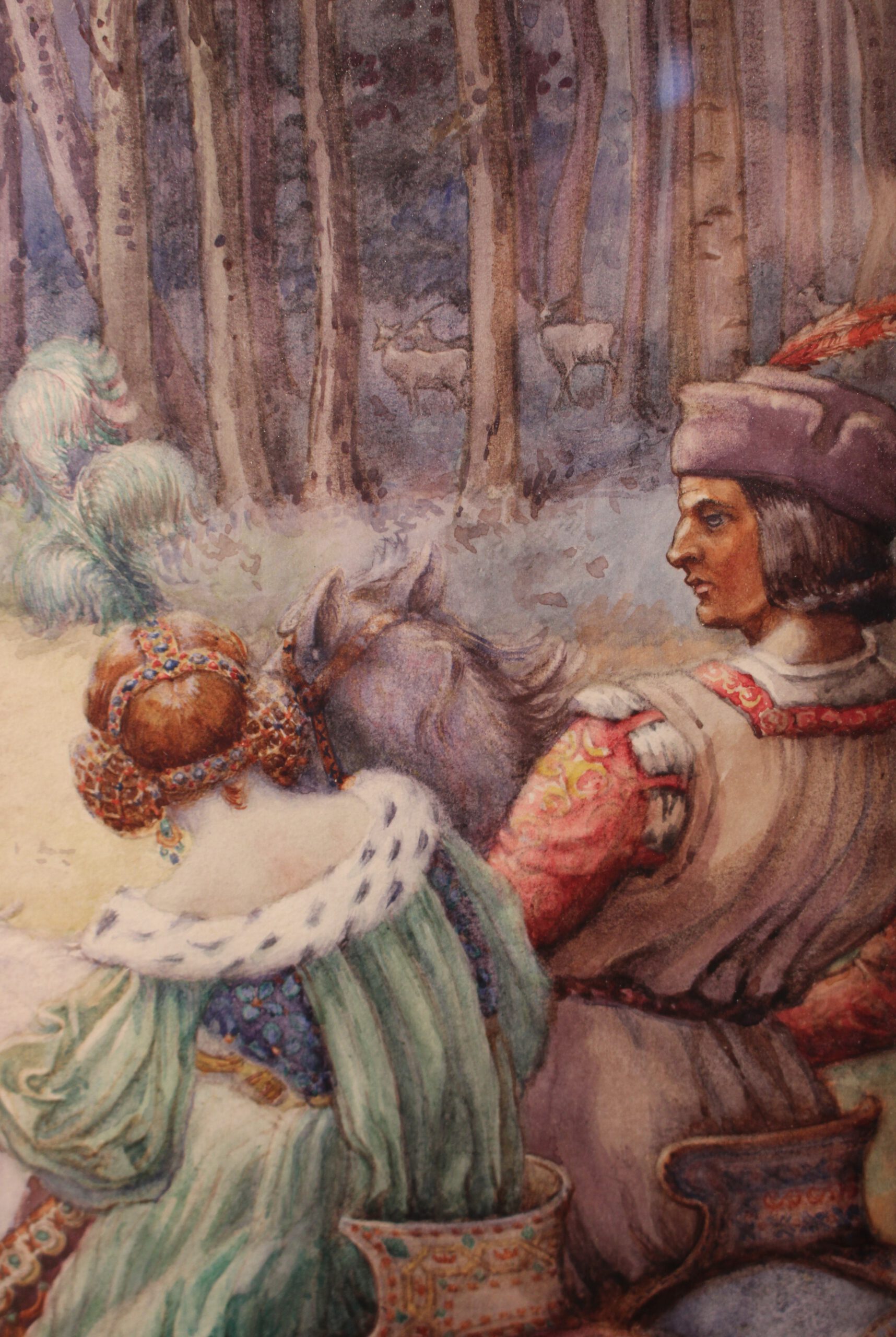 Het ene exemplaar stelt koning Cophetua en het bedelmeisje voor, een scène uit een zestiende-eeuwse Britse legende, waarin een koning, Cophetua de liefde opvat voor een bedelares. Het andere exemplaar stelt Lancelot en Guinevere voor.
