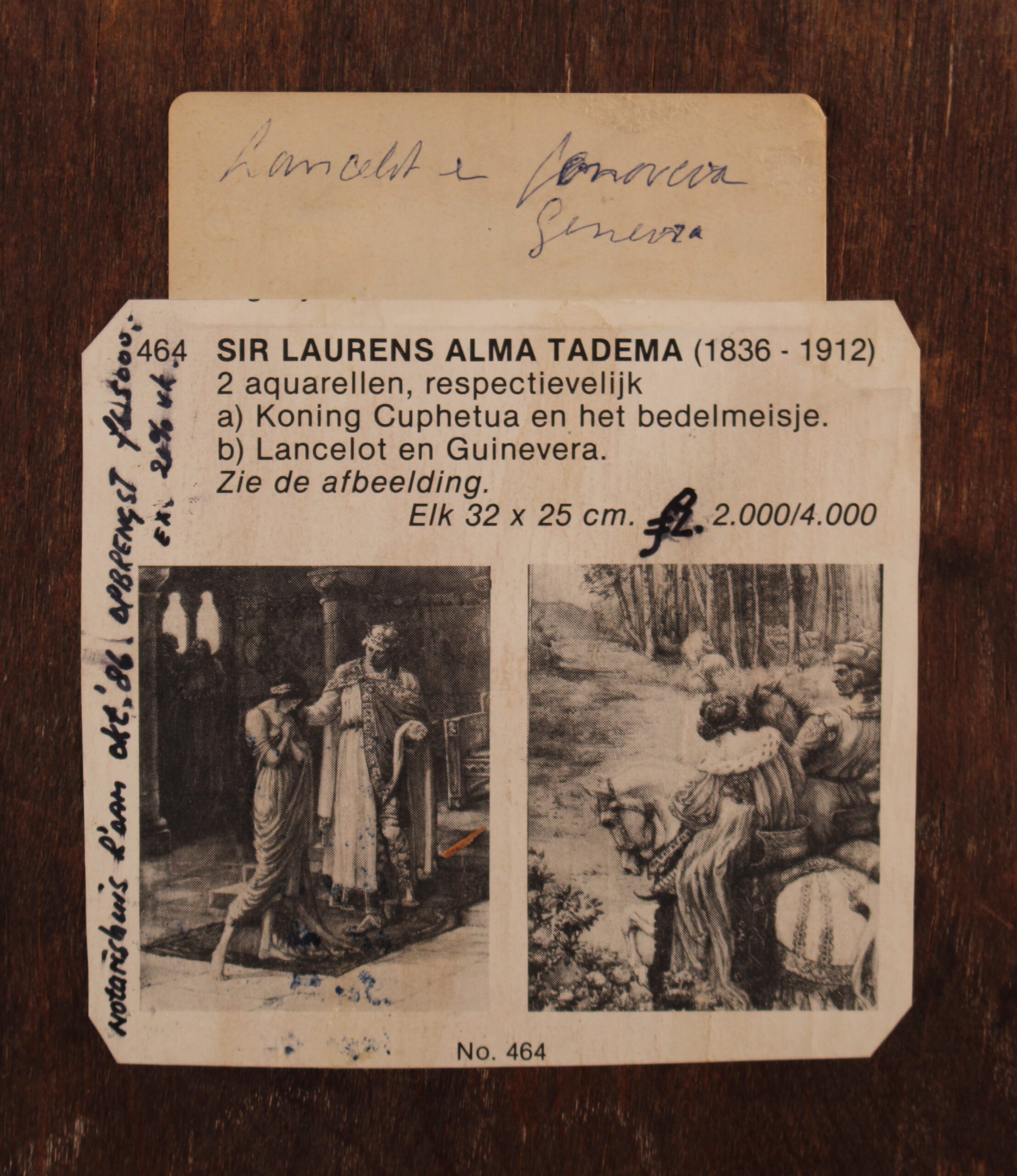 Beide werken zijn rond 1900 geschilderd door Sir Lourens Alma Tadema (1836 – 1912). Ze komen beide uit privébezit. Zijn 100% origineel. Niet gesigneerd. Een exemplaar heeft een watermerk.